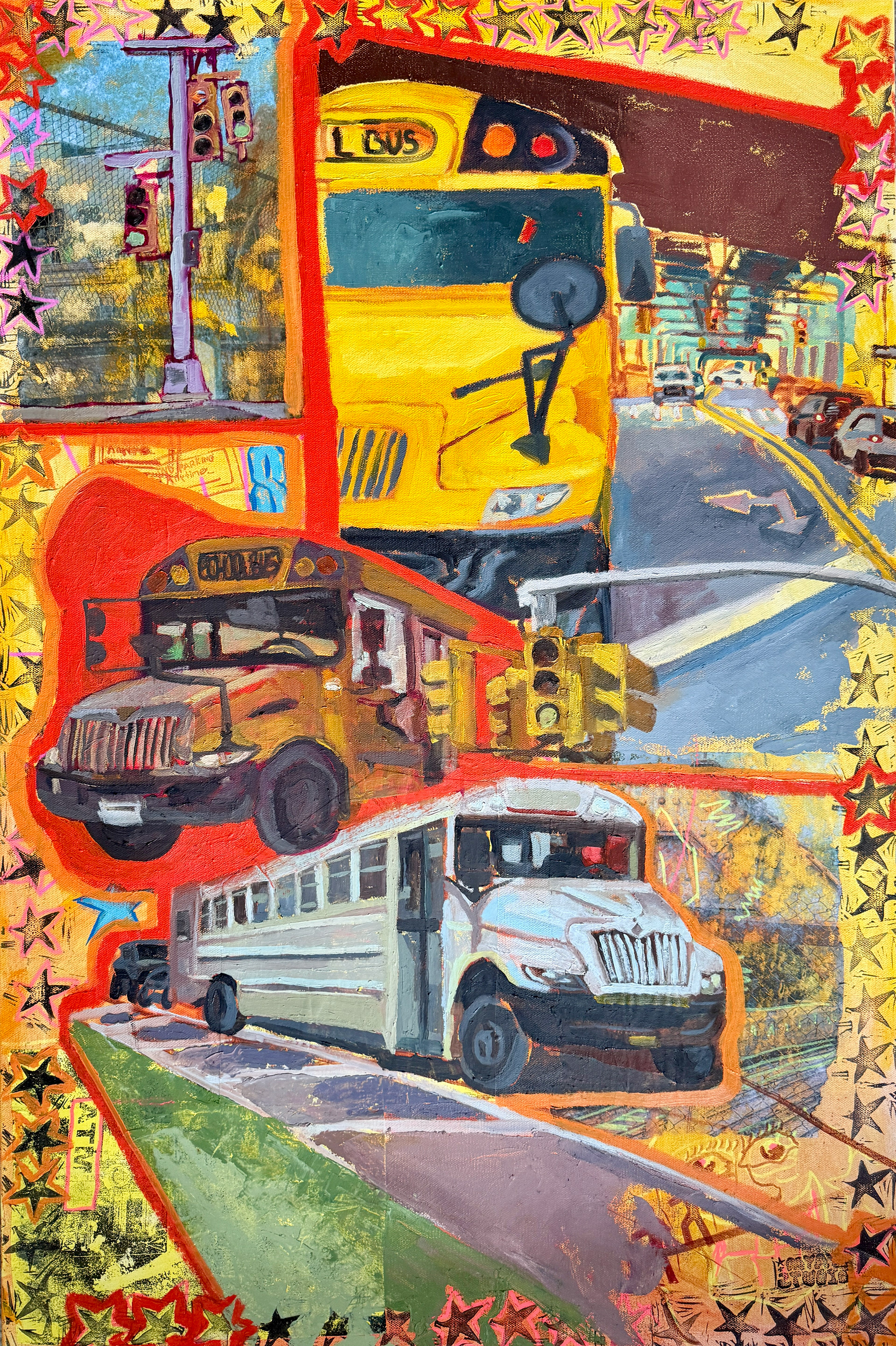 "Yellow Intersection", acrylic, oil, and chalk pastel on canvas, 2022